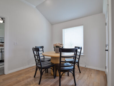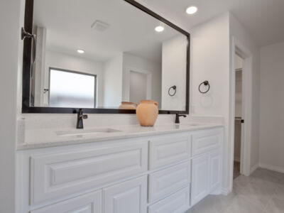 With a view of your backyard and the elegant detail of your sloped ceiling, the master bedroom provides the perfect place to unwind. The master suite features a luxurious, full bath, complete with a European walk-in shower and tub. The dual vanities include granite countertops and decorative cabinets with five-piece drawer fronts. The expansive walk-in closet stretches up to a ten-foot ceiling. We have incorporated the convenience of walking from your closet into the laundry room, which is also accessible from the front entry.