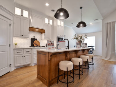 The center island kitchen is designed for efficiency and style. The stainless-steel appliances are situated for sensible flow. The 3 CM countertops, quality cabinets, and decorative end panels add to the beauty of this important room. Homes by Taber® incorporates a wide range of standard features to enhance the room—a walk-in pantry, gas cooktop, built-in electric oven, and microwave, upgraded tile backsplash, cabinetry hardware, stainless steel farm sink, and an oversized hood that’s vented to the outside.