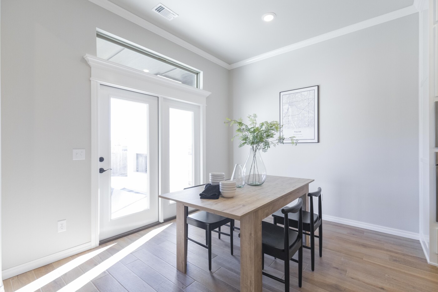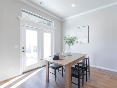 The entry with the ten-foot ceiling guides you to the spacious open floor plan. A stone-surround, gas fireplace provides the focal point on the back wall, where it can be enjoyed from anywhere in the spacious area. The dining room opens to your covered patio, where you can relax, entertain, or both. We include an outdoor wood-burning fireplace to keep you warm when you need it, a gas line to hook up your grill, and a cable outlet so you don’t miss your favorite shows.