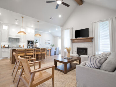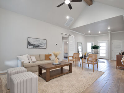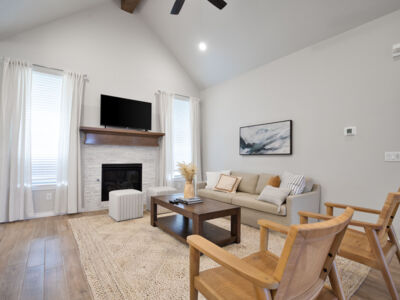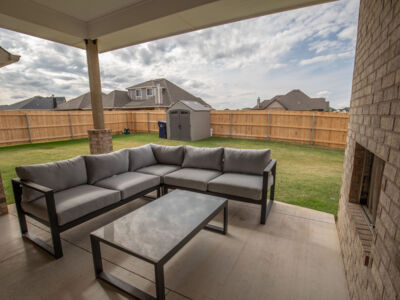 Inside this Sage Bonus Room 1 floor plan, you will find 2,300 sq ft of indoor living space with 4 bedrooms and 3 full bathrooms. More than enough space for families of all sizes to enjoy! From the moment you step inside the entryway, you are greeted by elevated, 10-foot ceilings and wood-like tile throughout the open-spaced living room, kitchen, and dining room. On the back wall stands a stacked stone gas fireplace that turns on with a simple switch, perfect for those chilly Oklahoma fall and winter nights.