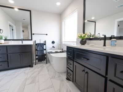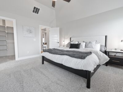 We have enlarged the primary bedroom suite in this popular floor plan, which features oversized windows for an abundance of natural light. Connected to the bedroom, you will find your spacious primary suite bath and two dreamy four-season walk-in closets for generous storage. In the bathroom, the two vanities are separated between the free standing bathtub, allowing two people to get ready at once within the space. Across from the vanities, you will find an oversized walk-in shower with tile from floor to ceiling ready to be used at the turn of a knob.